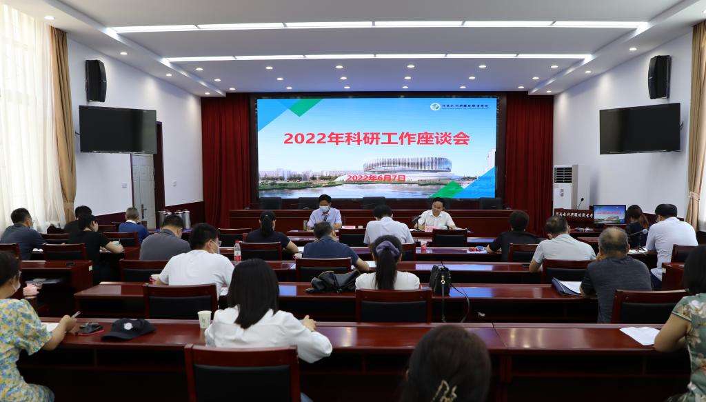 2022年6月7日,我校召开2022年度科研工作座谈会。校长李广慧,副校长黄功学,人事处、教务处、科研外事处和各系部负责人,省级在研课题负责人、科研骨干参加。会议由黄功学主持。