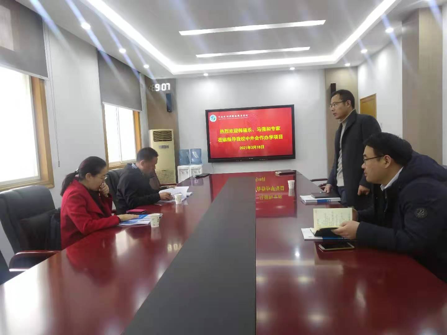 为做好我校中外合作办学工作,推动学校与马来西亚玛莎大学、白俄罗斯国立信息与无线电大学合作办学项目,2021年3月19日,华北水利水电大学国际交流与合作处韩福乐处长、郑州轻工业大学国际交流与合作处马强和处长应邀到我校进行论证指导。副校长黄功学,水利工程系、信息工程系负责同志及科研外事处相关人员参加会议。